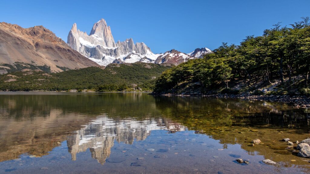 Para chegar à lagoa propriamente dita, descemos alguns metros e, se o tempo permitir, será o momento perfeito para um almoço, desfrutando de uma vista e um momento inesquecíveis. Depois de explorar a área e tirar muitas fotos, o GRUPO 1 se despede deste lugar mágico e inicia a descida para El Chaltén. Ao chegarmos ao Ponto de Encontro na área do Acampamento Poincenot, após caminhar 3 km (onde o GRUPO 2 se separa), seguimos por um caminho diferente que nos levará de volta à cidade de El Chaltén, passando pela segunda atração, a Laguna Capri, totalizando uma descida de 12 quilômetros.