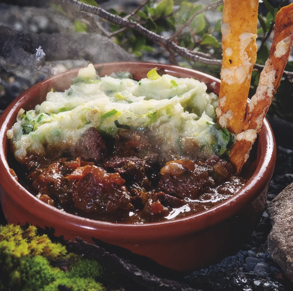 • Goulash de guanaco com purê de batatas e alho-poró
