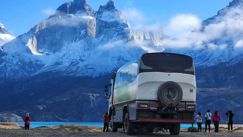 Atravessando a estepe patagônica de norte a sul, chegaremos à fronteira de Cancha Carrera (aproximadamente 3,5 horas). De lá, iniciaremos nossa jornada pela deslumbrante região sul do Chile, entrando finalmente no Parque Nacional Torres del Paine, cujo nome significa “Azuis” na língua tehuelche, em referência à cor predominante do parque.