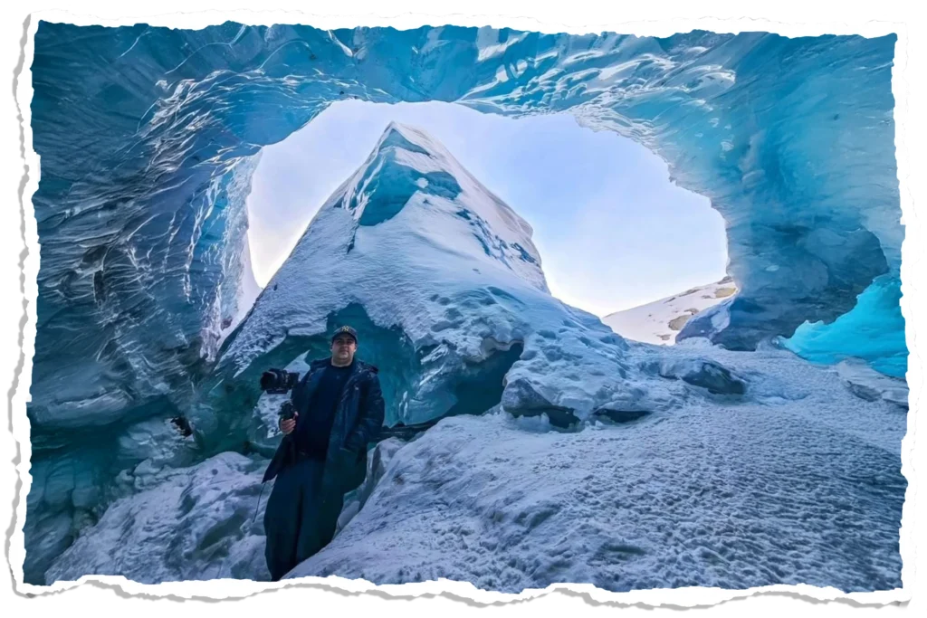 A lagoa geralmente está congelada no inverno, rodeada de blocos de gelo e paredes de neve, e o glaciar Vinciguerra aparece imponente logo atrás, com suas fendas azuis e formações que parecem esculturas naturais. É difícil descrever a sensação de estar ali, é um lugar que realmente te faz sentir pequeno diante da grandiosidade da natureza.